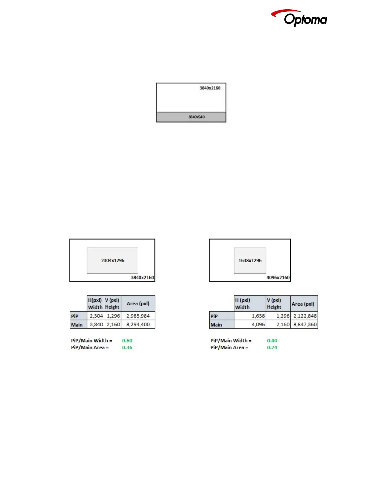 For input resolutions of 4090x2160@60, PIP width is limited by software to 40% of the width of the
