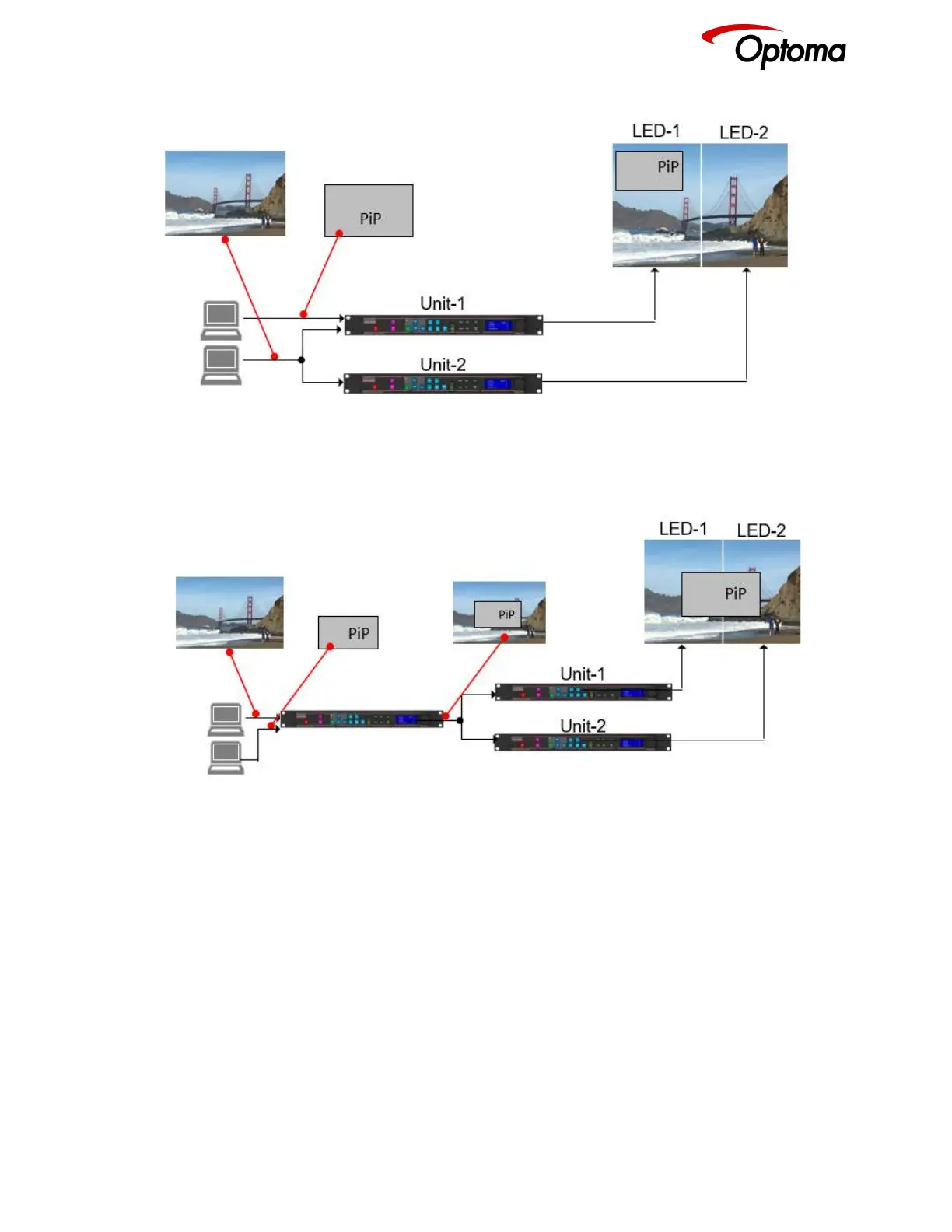 If the PiP needs to straddle two screens, an additional unit is needed upstream to compose the