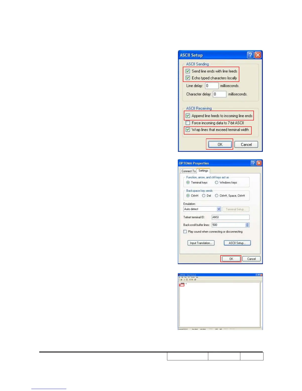- The projector will feedback “P” from the hyper terminal.