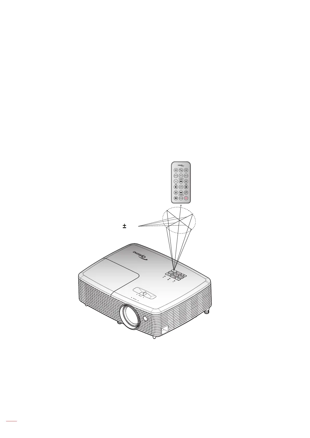 at an angle within 20 degrees perpendicular to the projector's IR remote control sensor to function correctly. The