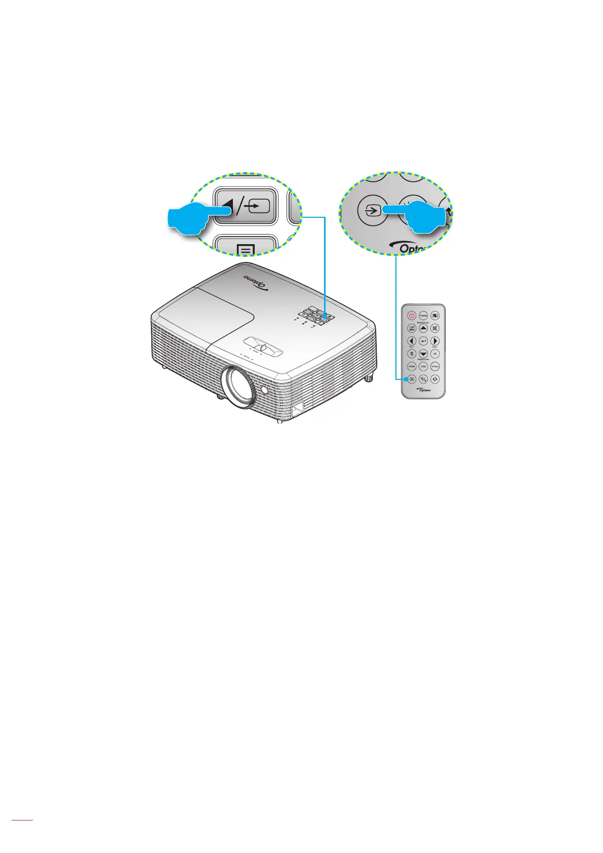 etc. The projector will automatically detect the source. If multiple sources are connected, push the source button on