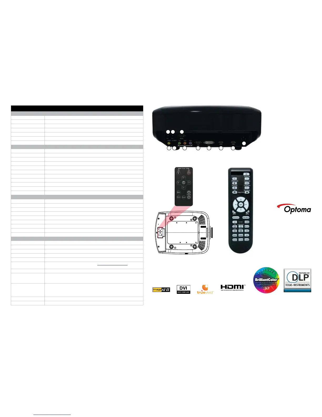 DLP®, BrilliantColor™ and the DLP logo are registered trademarks of Texas Instruments. TrueVivid™ and Image AI™ are registered trademarks of Optoma Technology, Inc. VIDI is a registered