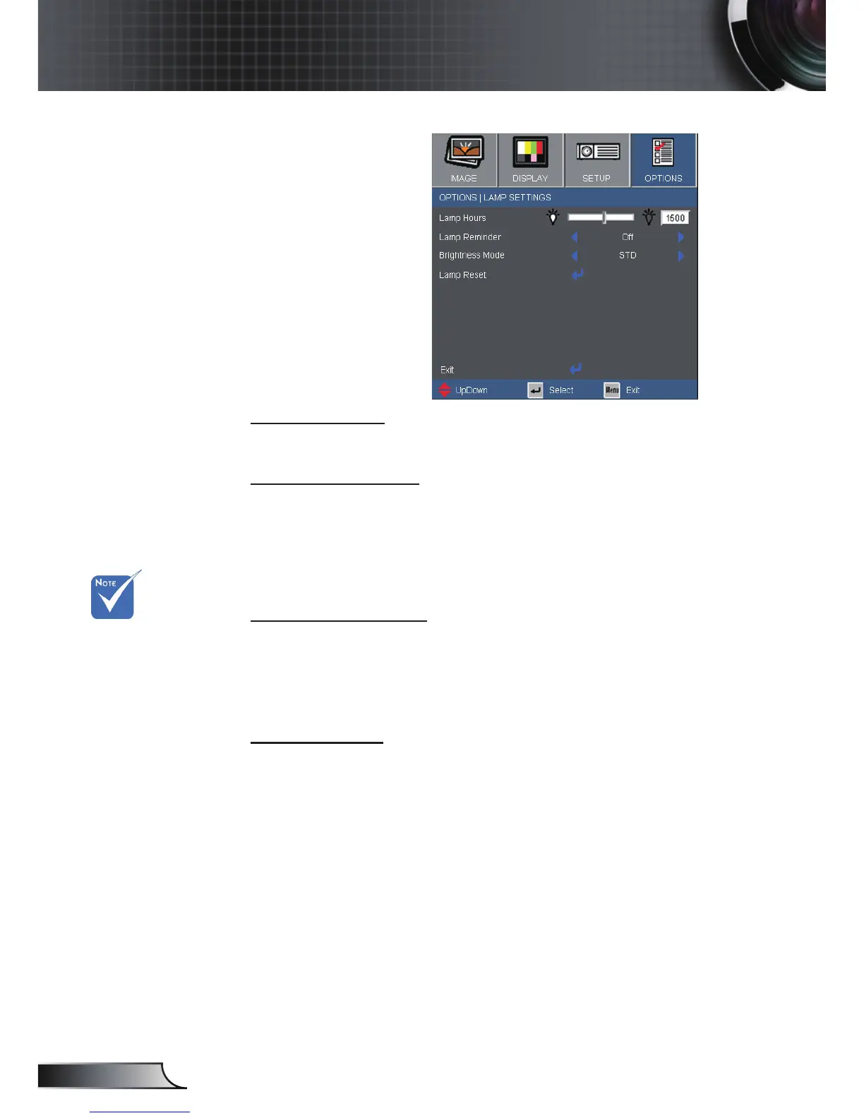 STD: Choose “STD” to dim the projector lamp which will lower
