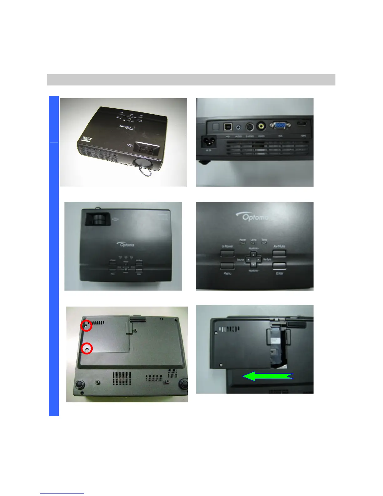 Loose these two screws. Remove and take out the lamp cover.
