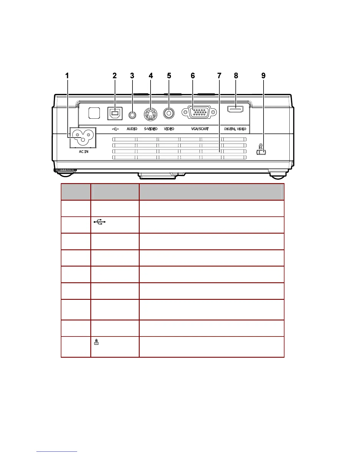 2-6. I/O Ports Illustration about Projector.