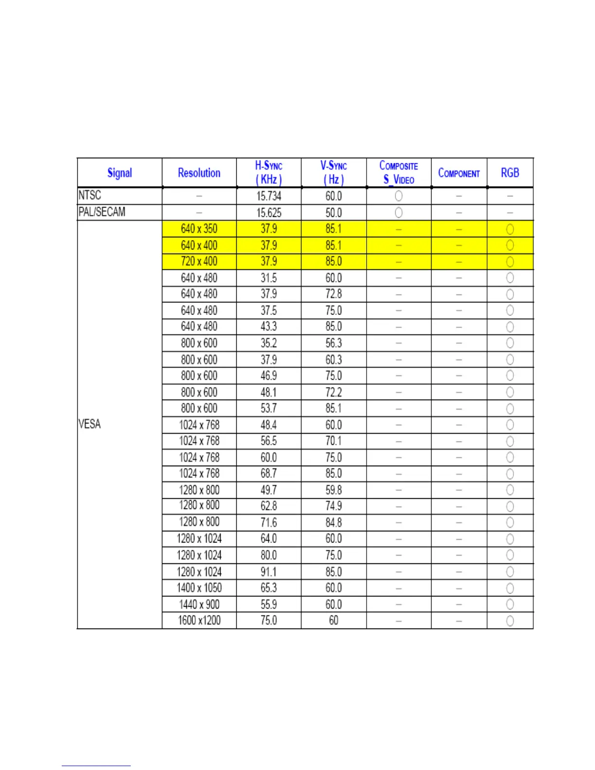 10-4. Factory Preset Display Modes