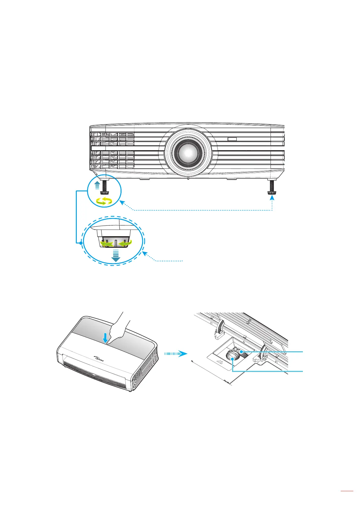 2. Rotate the adjustable foot clockwise or counterclockwise to raise or lower the projector.
