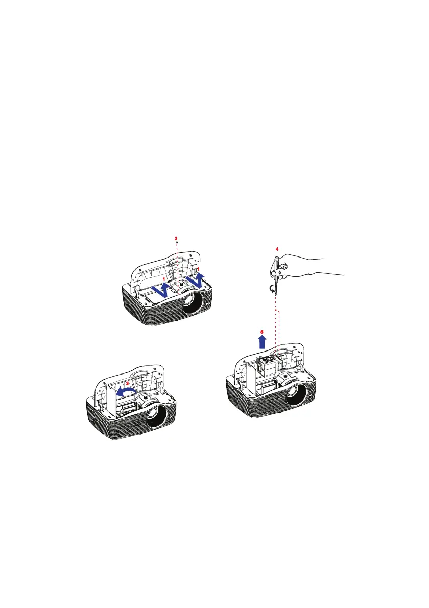 5. Loosen the screws from the lamp module. 4