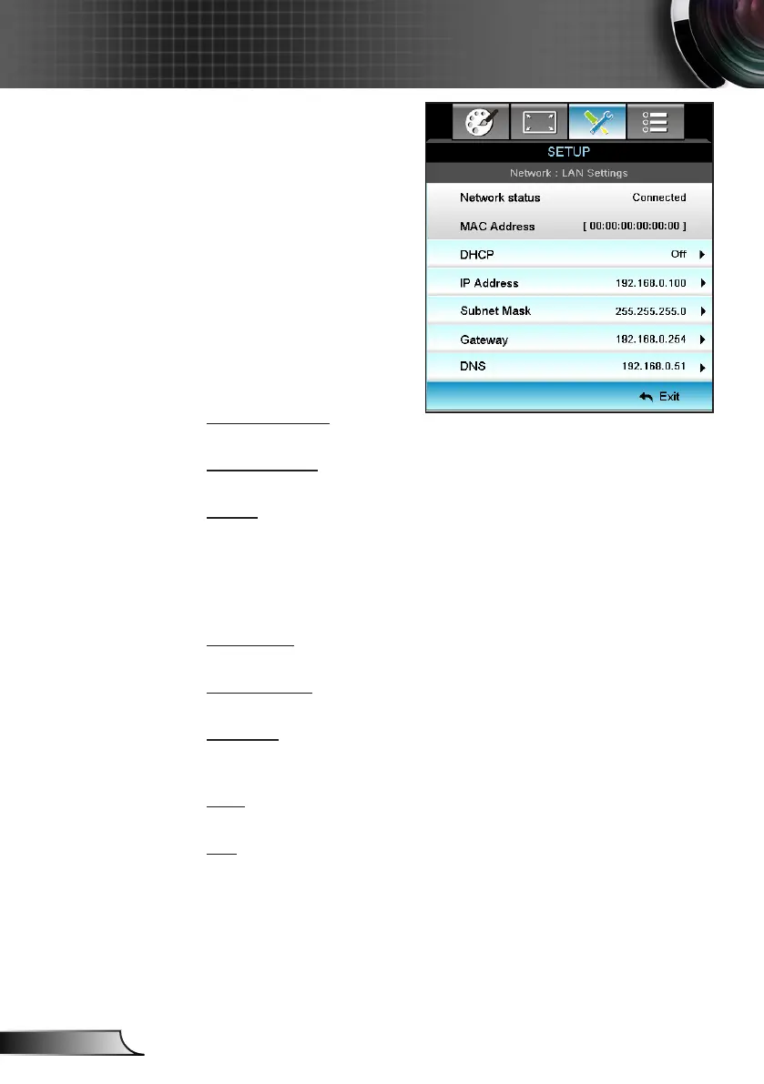 On: Projector will obtain an IP address automatically from your `