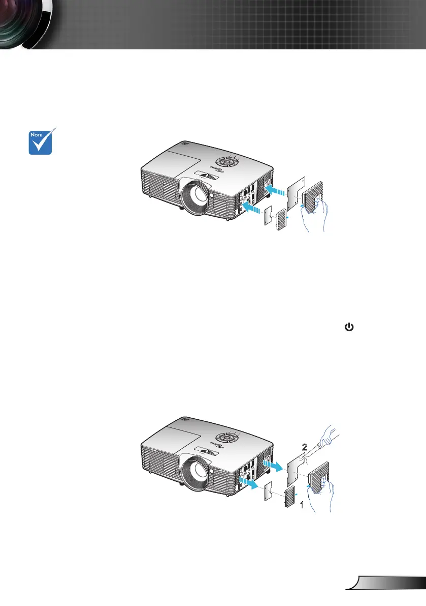 Switch off the power to the projector by pressing 1. the “ ” button on