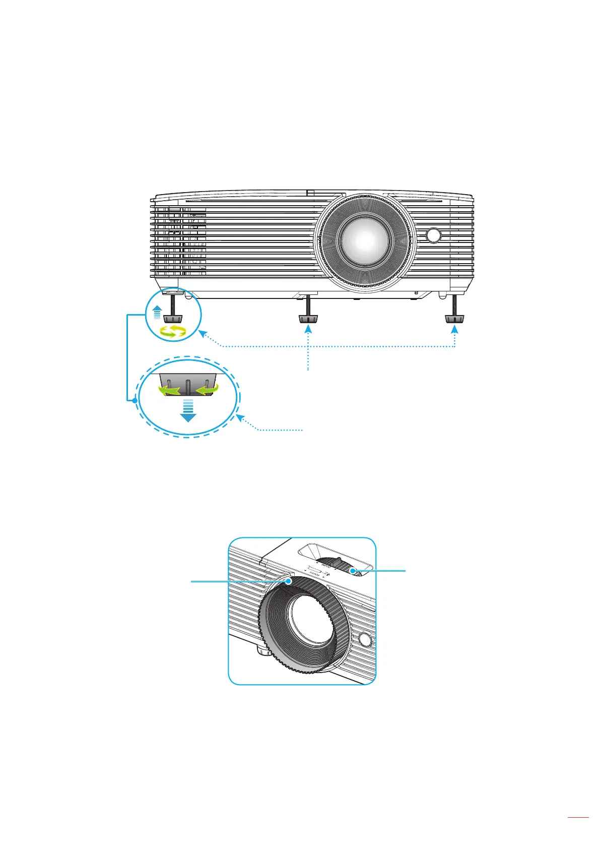 2. Rotate the adjustable foot clockwise or counterclockwise to raise or lower the projector.