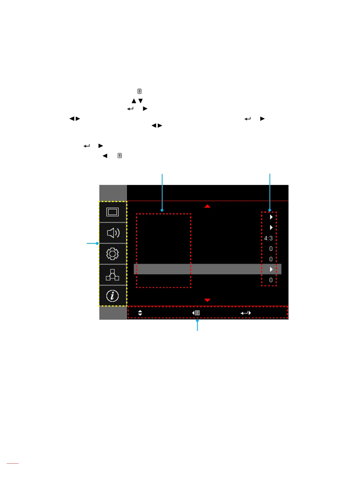 6. To exit, press the or again. The OSD menu will close and the projector will automatically save
