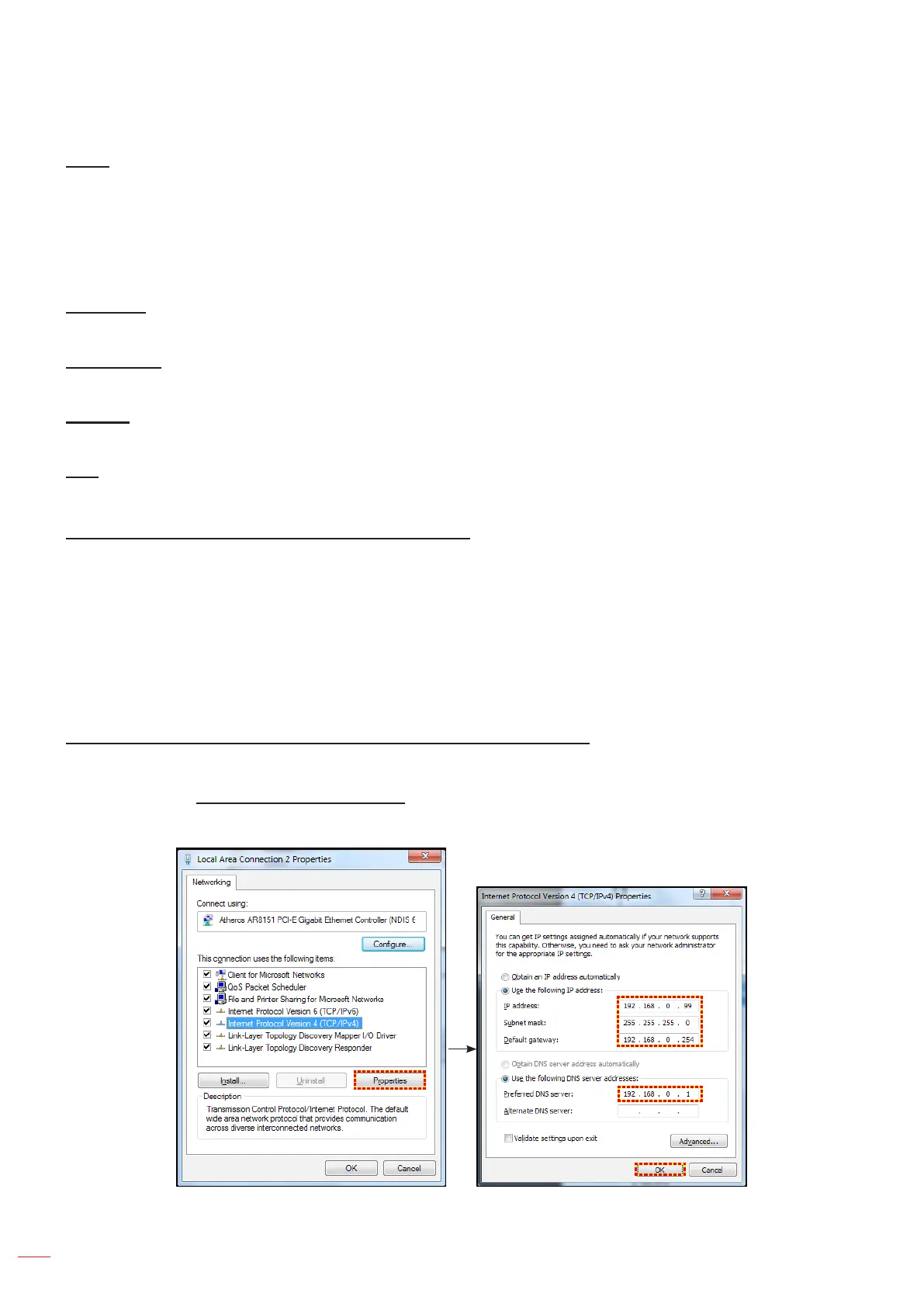 2. Congure the IP address, Subnet Mask, Gateway, and DNS on projector (“Network > LAN”).