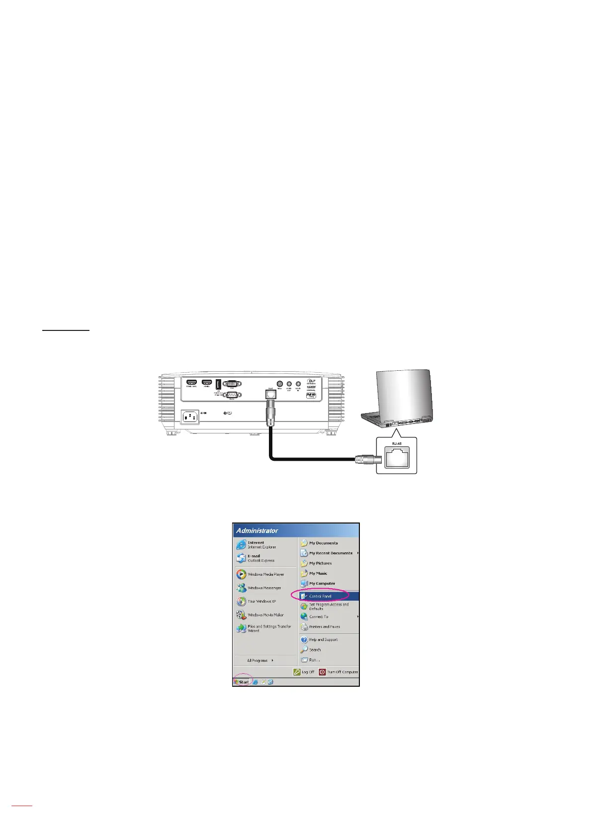 1. Connect an RJ45 cable to RJ45 ports on the projector and the PC (laptop).