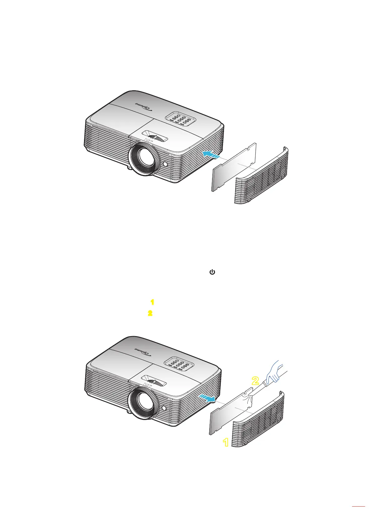 1. Switch off the power to the projector by pressing the " " button on the remote control or the projector