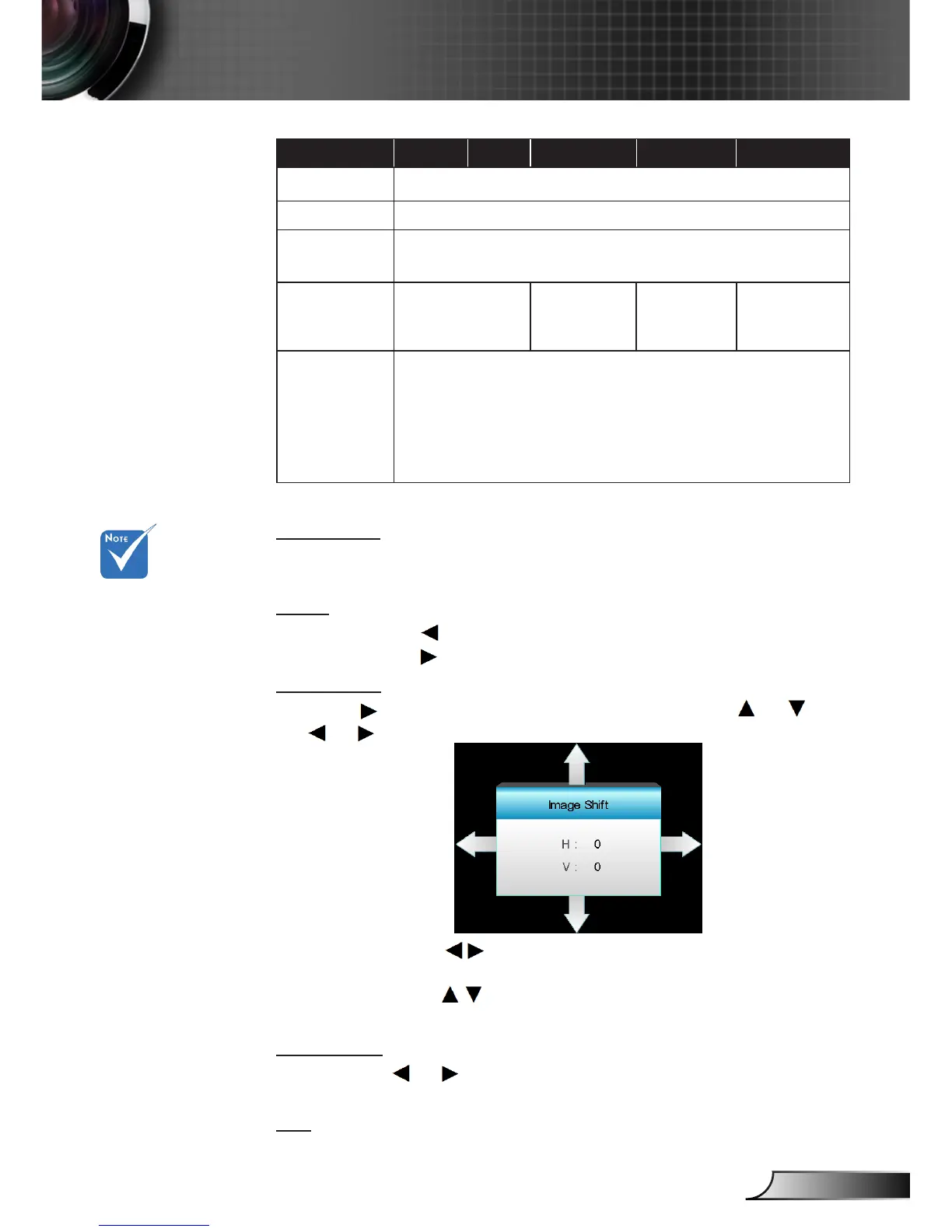 V: Press the ` to shift the projected image position verti-