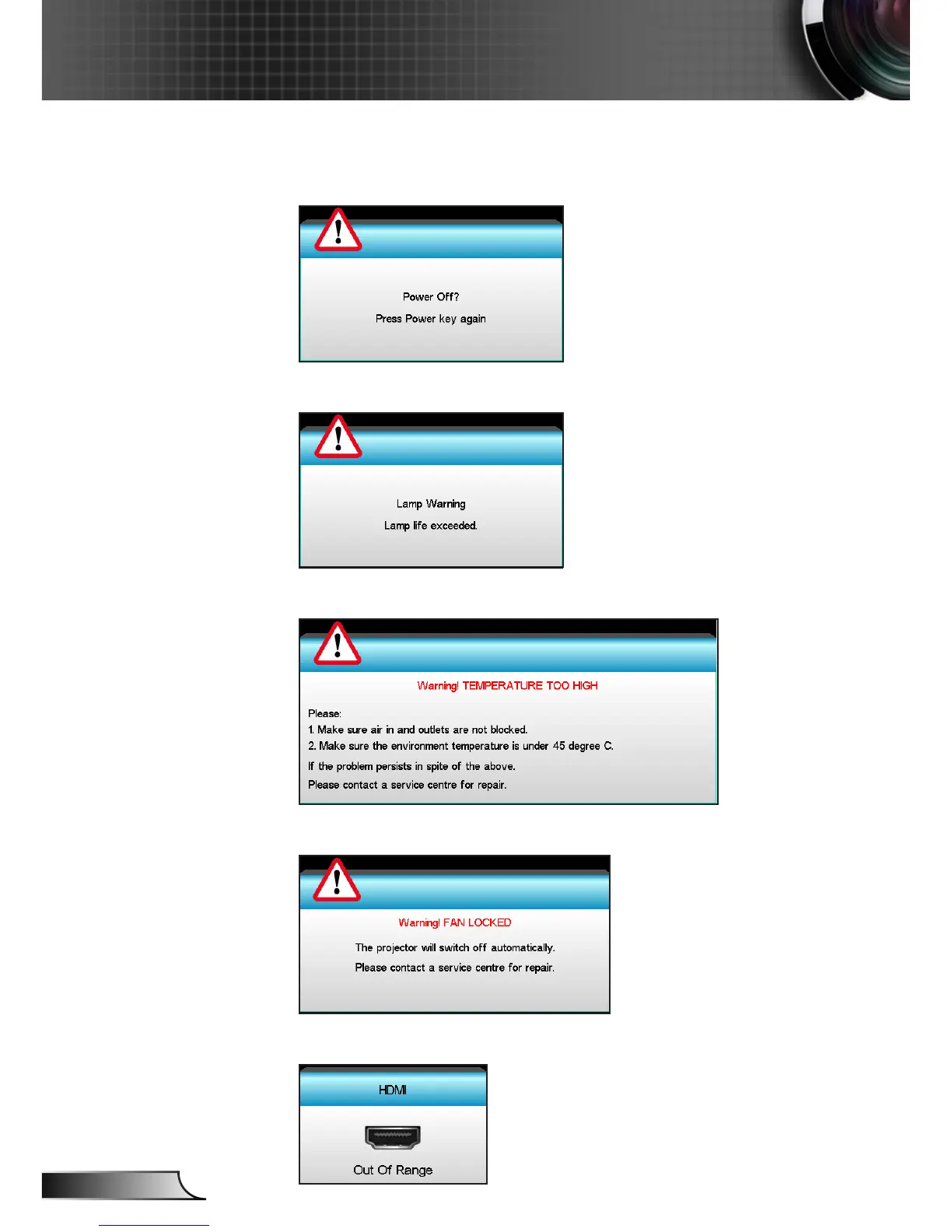 Optoma X402 - On-Screen Error Messages