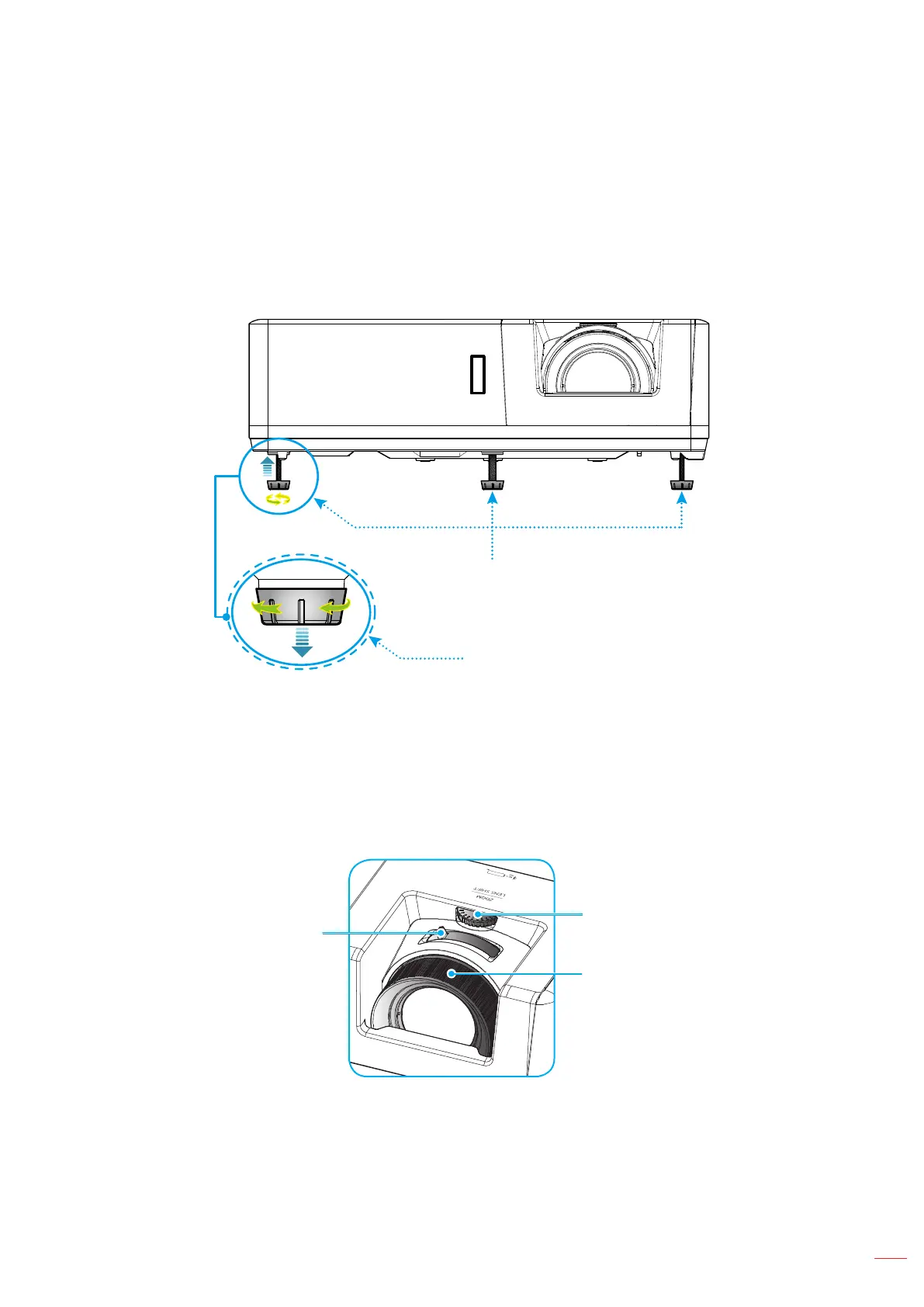 2. Rotate the adjustable foot clockwise or counterclockwise to raise or lower the projector.