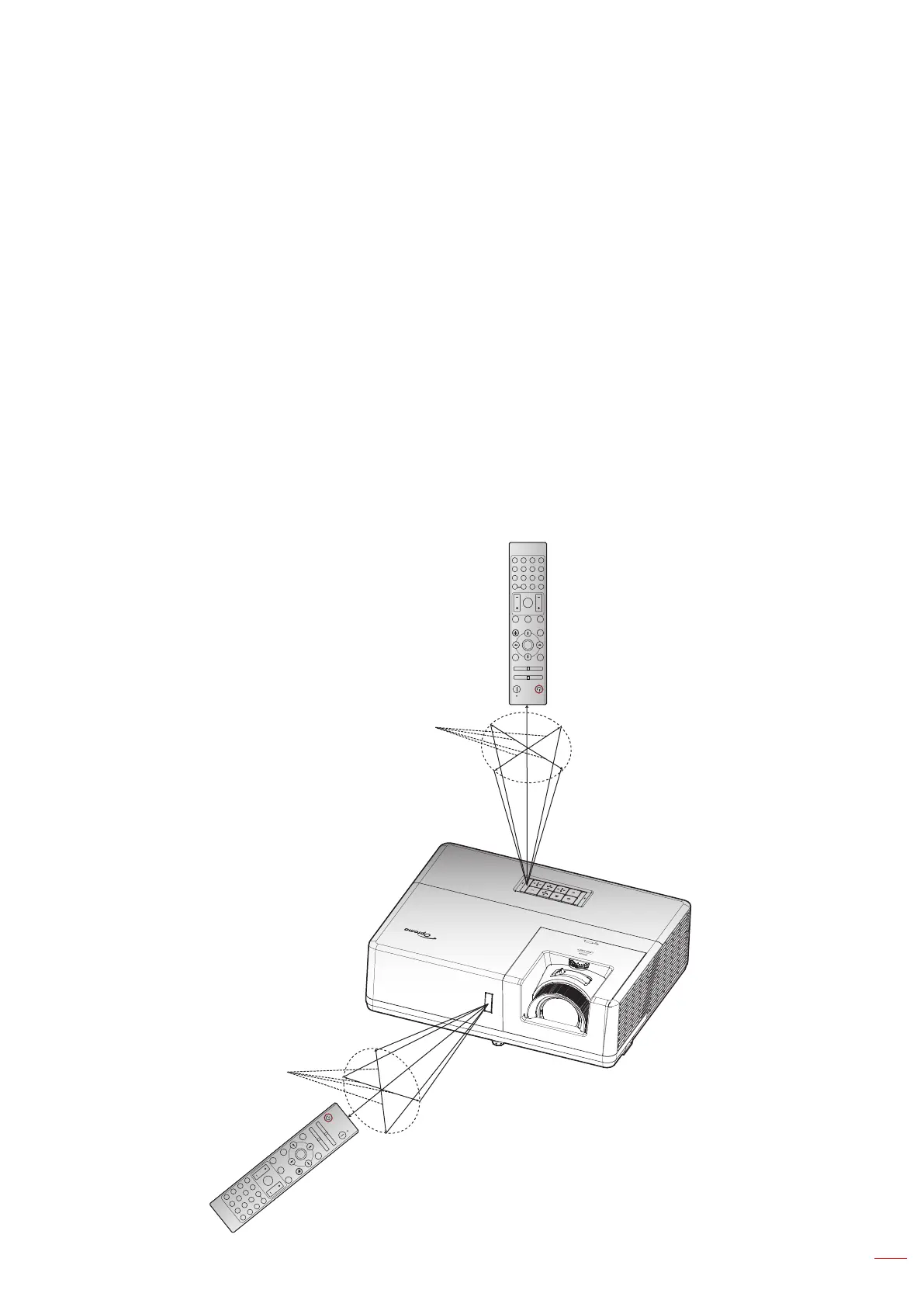 Infra-Red (IR) remote control sensor is located on the top and front sides of the projector. Ensure to hold the