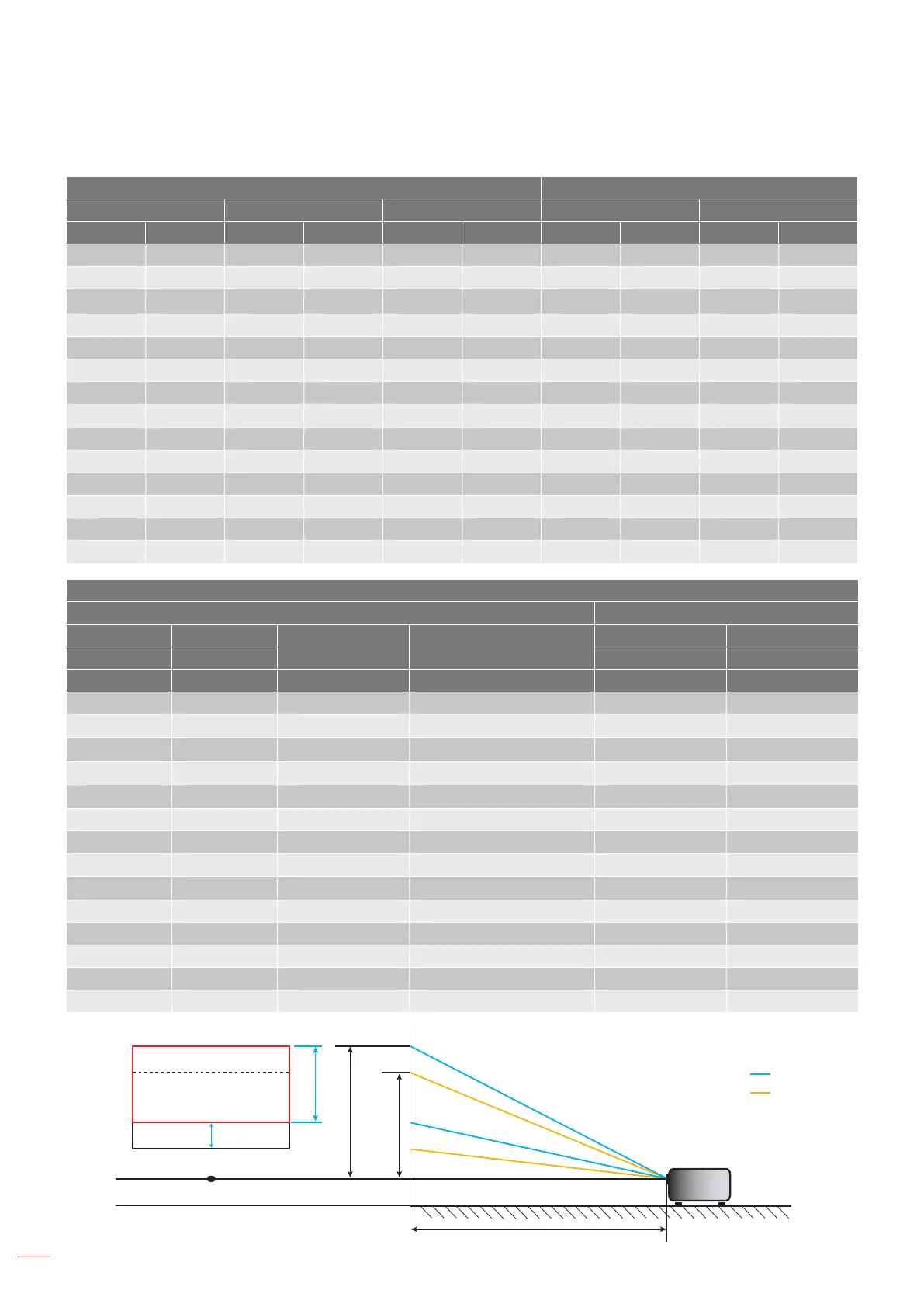 PJ lens Center to top of image Image Shift Range