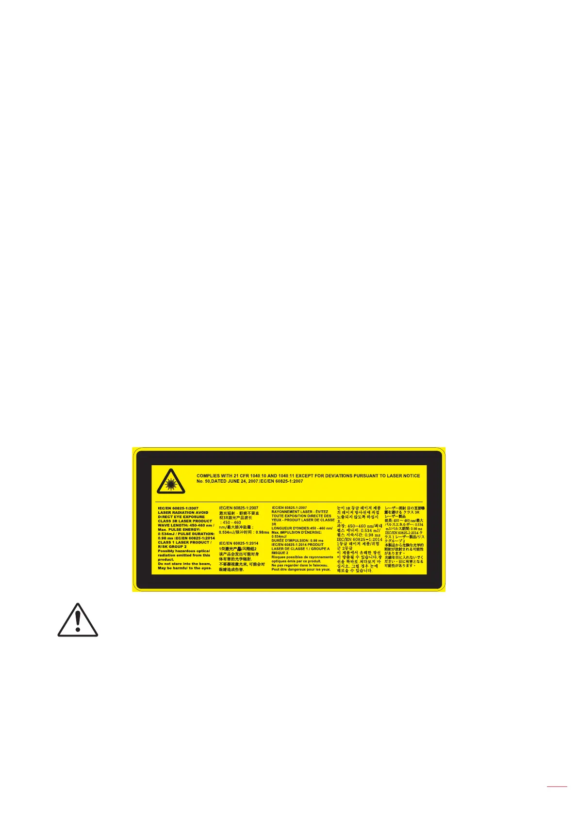 also complies with 21 CFR 1040.10 and 1040.11 as a Risk Group 2, LIP (Laser Illuminated Projector)