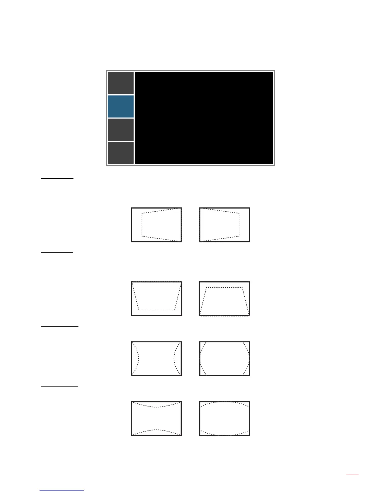 Adjust image distortion horizontally and make a squarer image. Horizontal keystone is used to correct a keystoned
