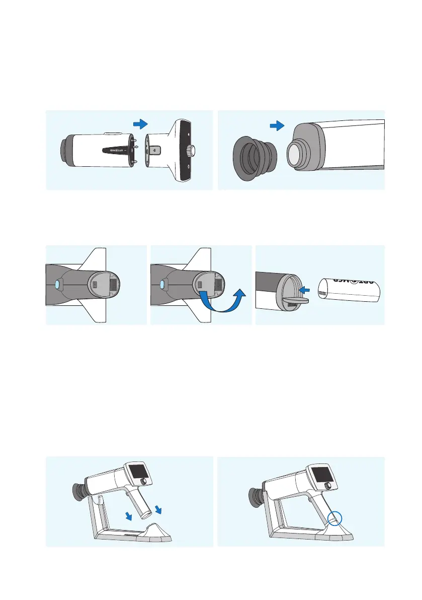 Place the eye cup (7) on the optics ring of Aurora Retinal Module (2).