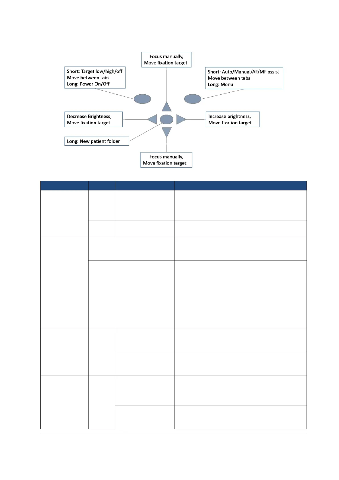Camera keys function as shown in image below when Smartscope FA optics module is attached: