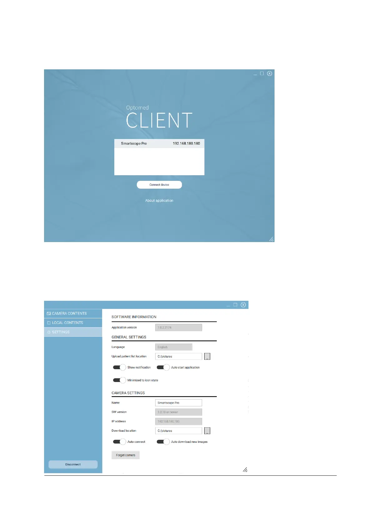 camera will be downloaded and the location where the patient list will be uploaded to the selected