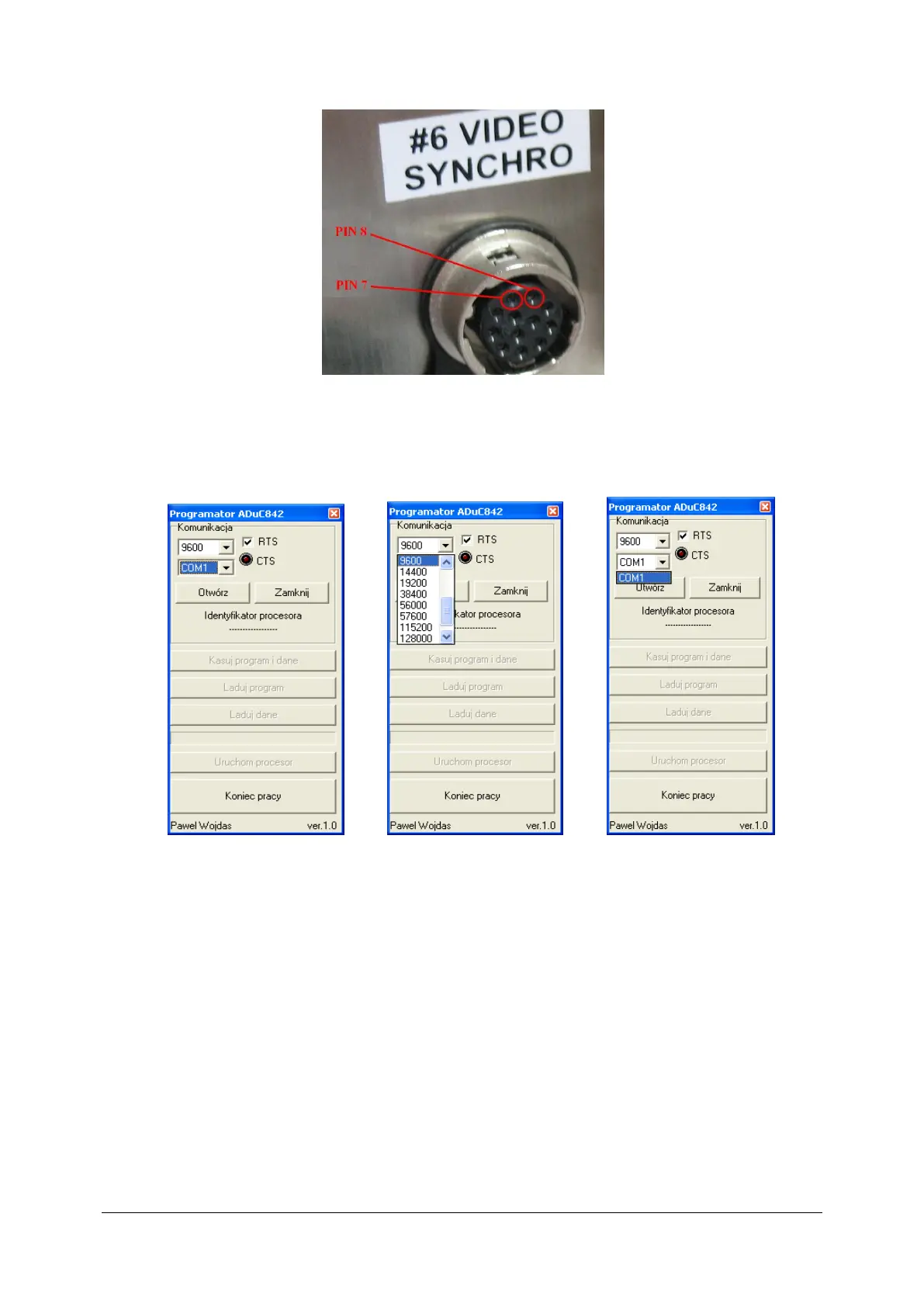 6. Run program aduc842prog.exe. Set speed of transmission of COM port on 9600.