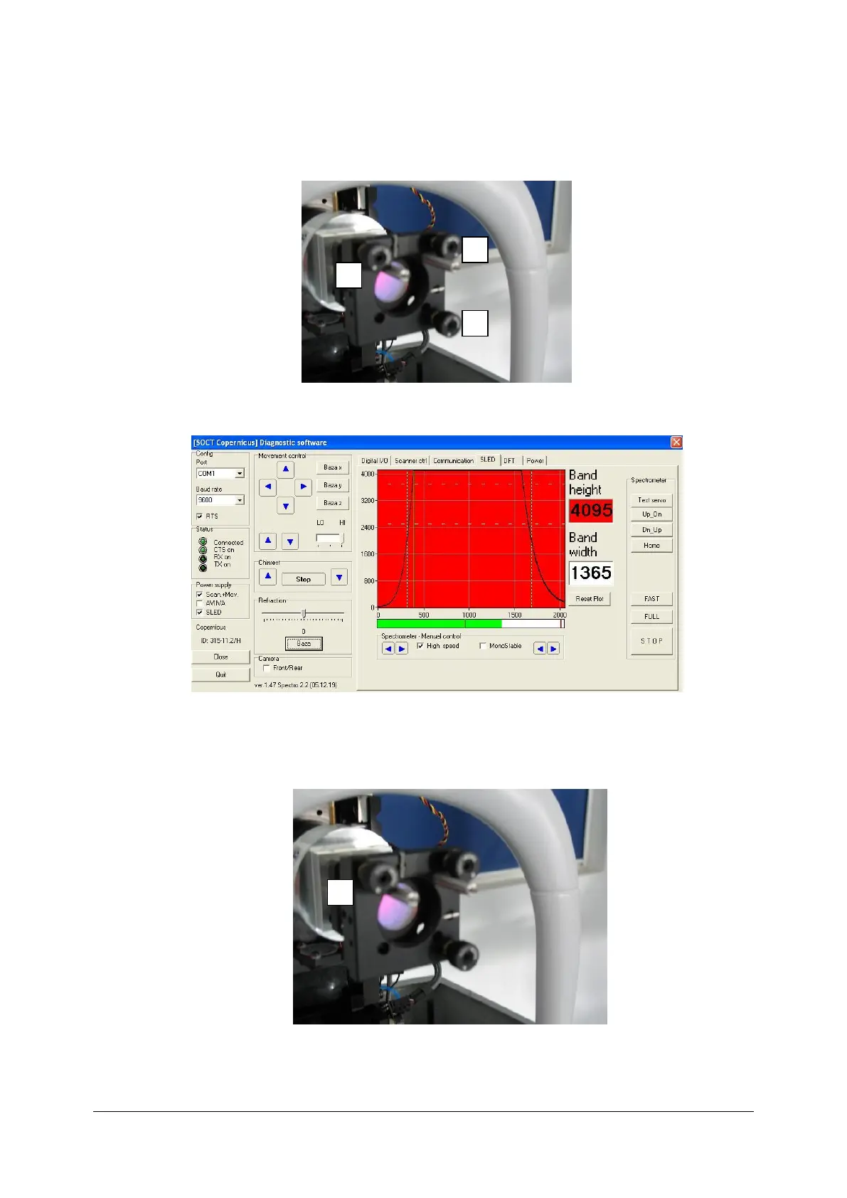 9. Rotate screws 1 on artificial eye. Set the band-height on value around 1000.
