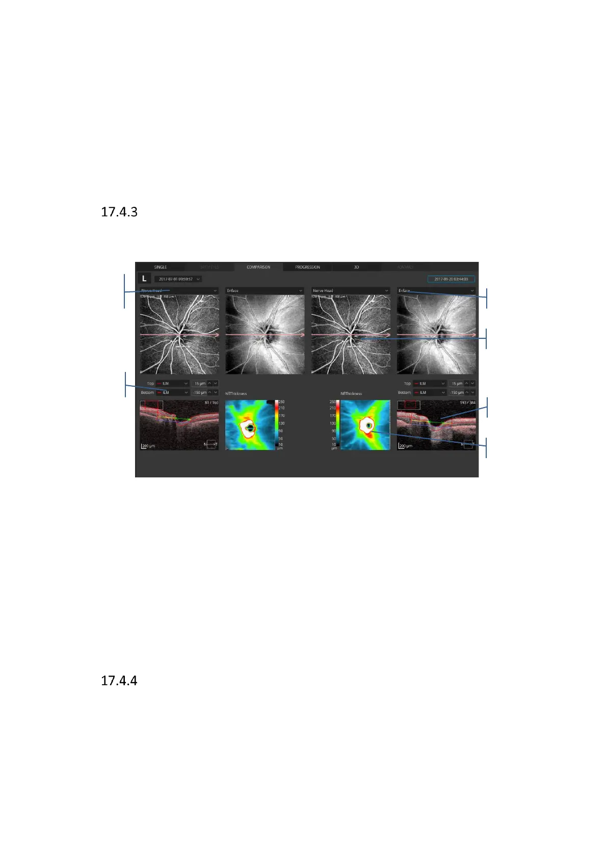 This screen shows the analysis results comparing two examinations of one eye on the same
