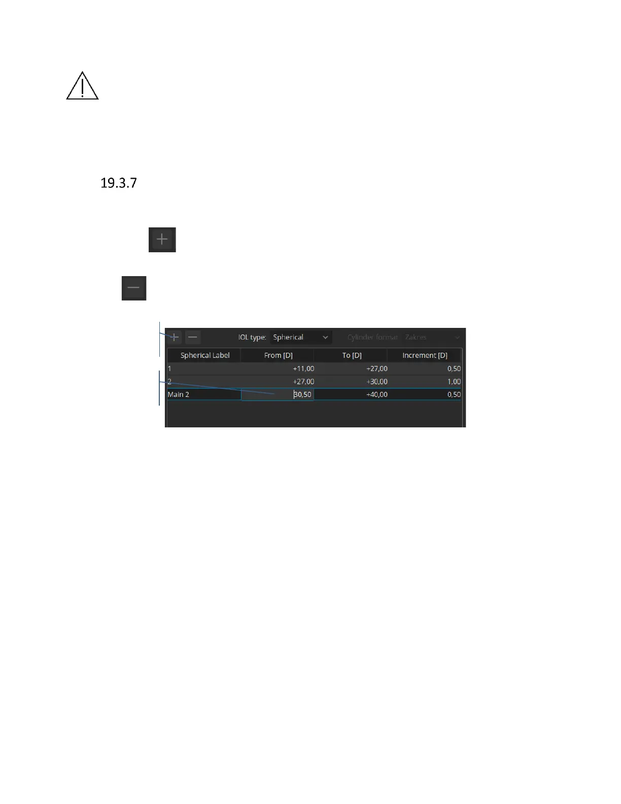 dioptres. It is also possible to create additional power ranges and increments. To add a new power