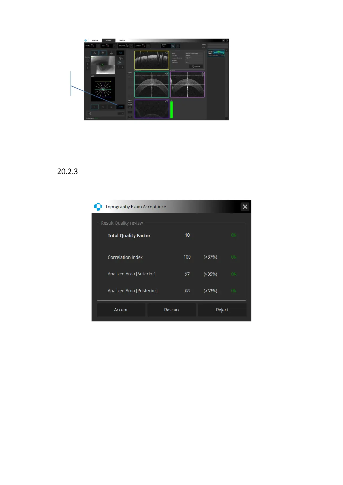 [Reject] - the examination is rejected and the system returns to the acquire window.