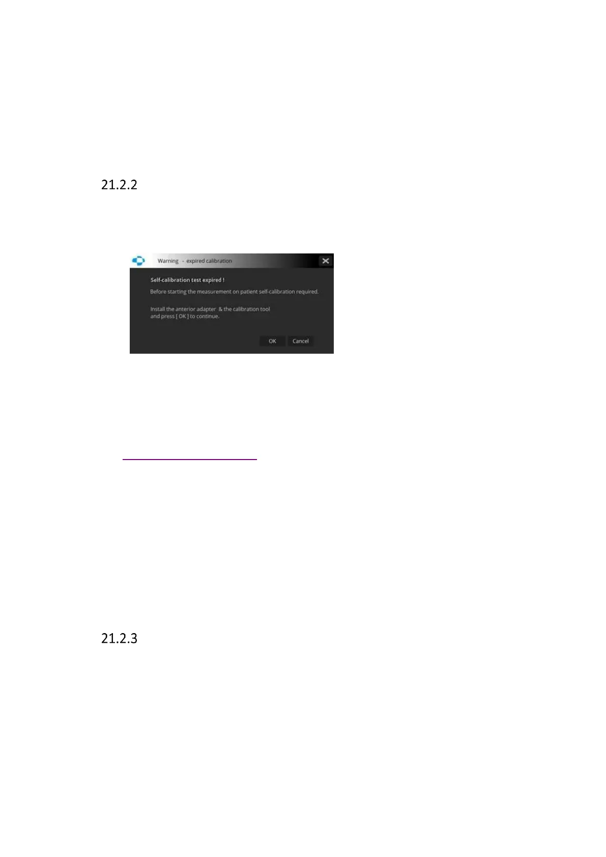 “Last calibration X days ago. Before starting a measurement on a patient self-calibration is