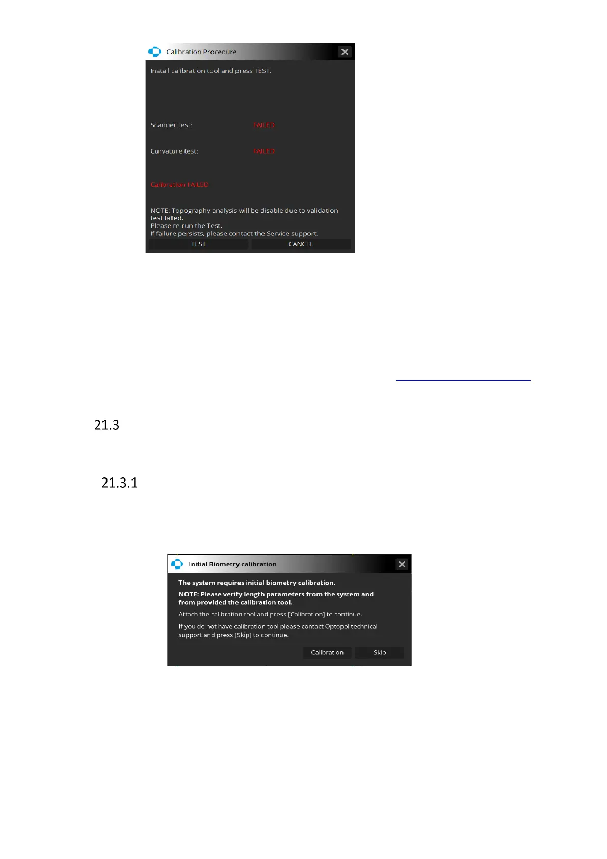 Performing calibration of the Biometry module ensures high precision of measurements.