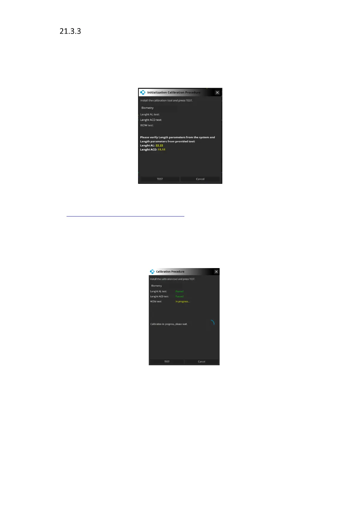 section 21.1 Calibration procedure preparation) and to verify the correctness of the tool