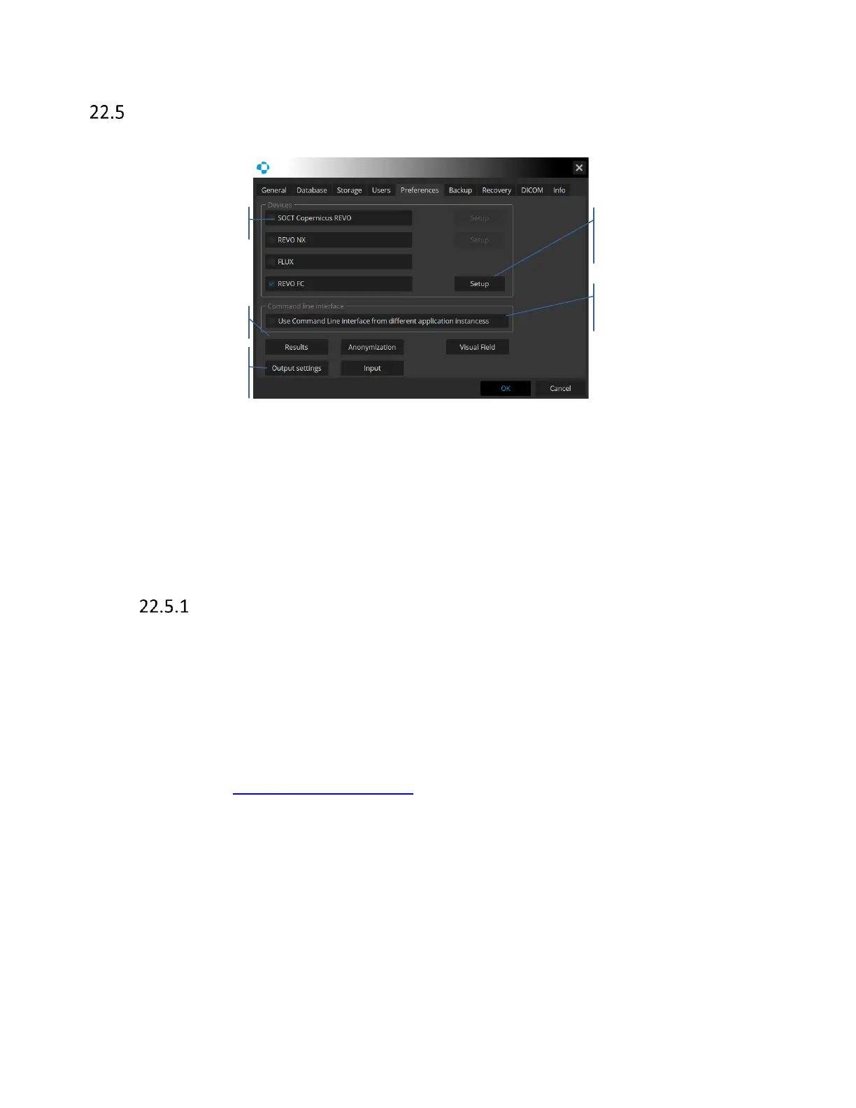 Select the type of the OCT device connected to PC. When the device is selected the device, Setup