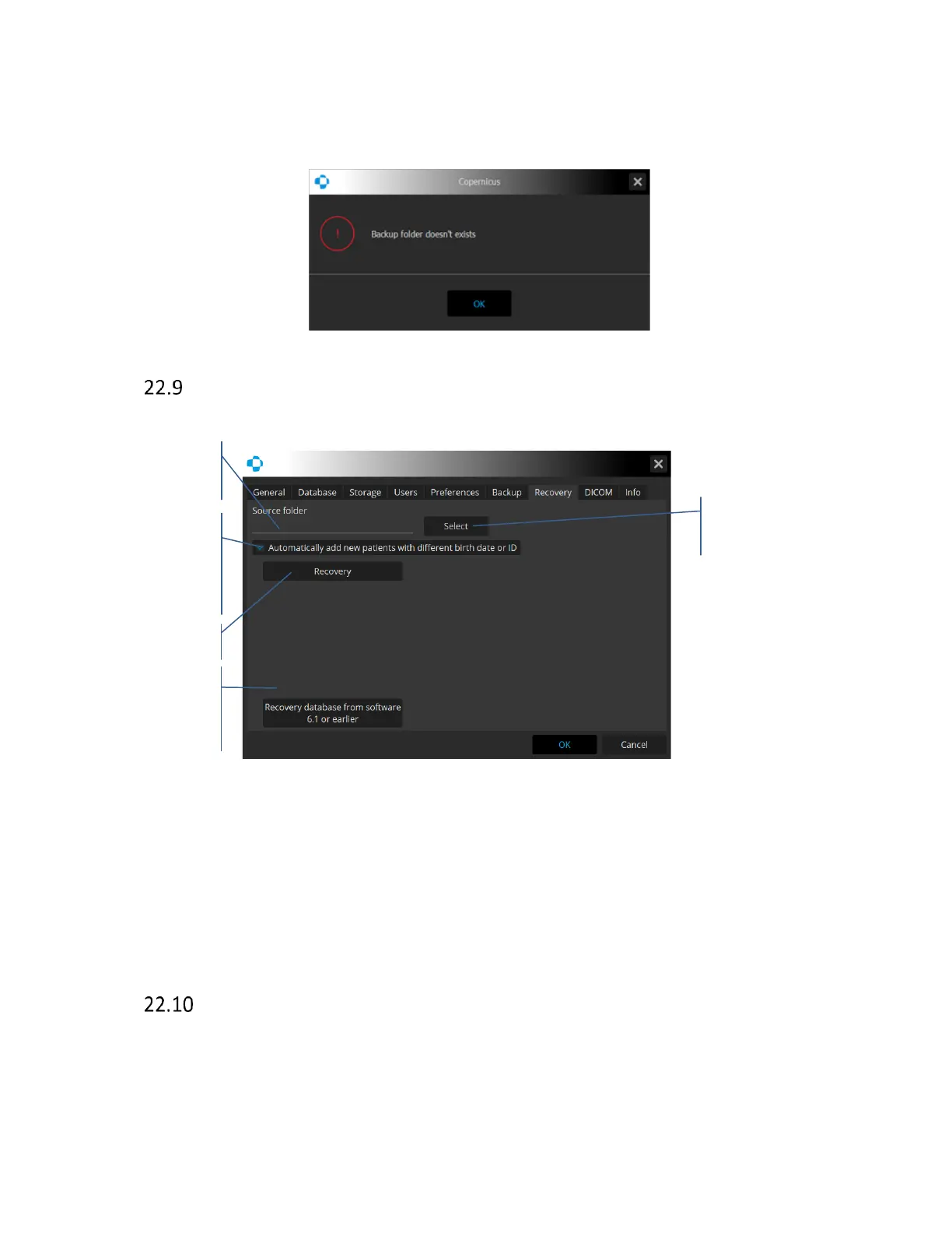 Database recovery from software 6.1 or earlier - after pressing the Select button, an additional