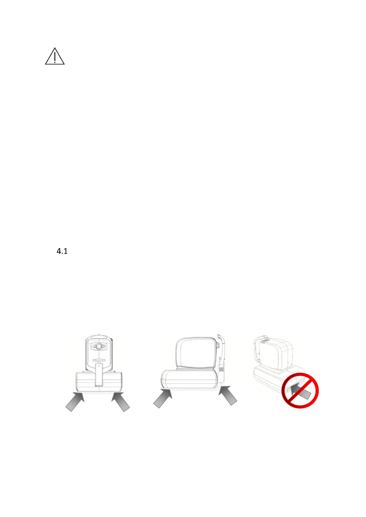 during moving. It should be lifted by at least two persons. Firmly hold the instrument body at