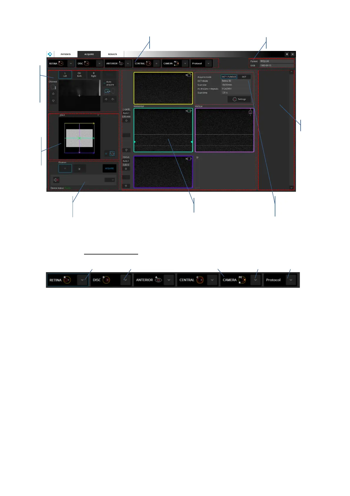 1. Scan mode - enables the user to choose the mode of scanning. For each eye area (Retina,