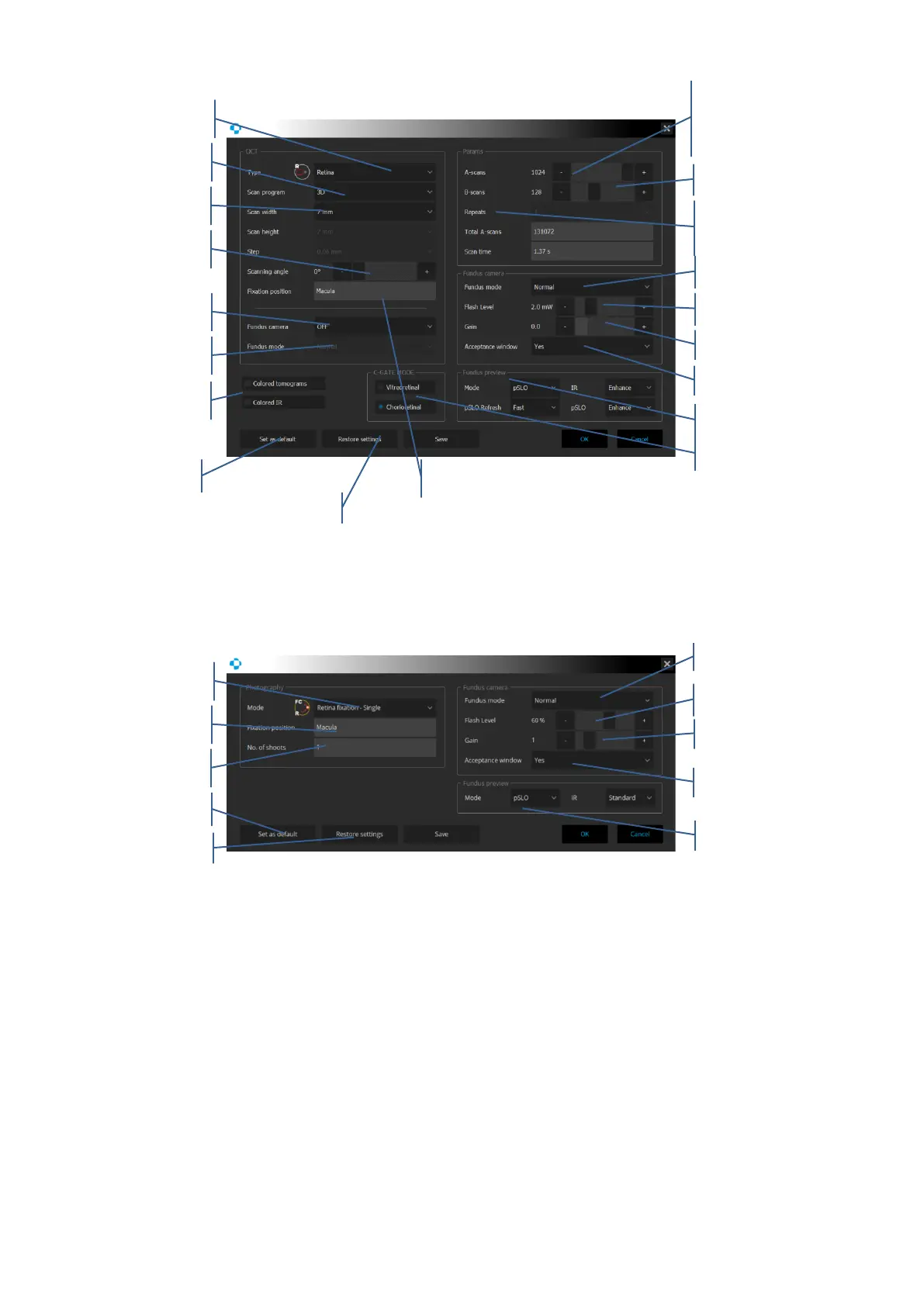 Figure 26. OCT examination settings panel