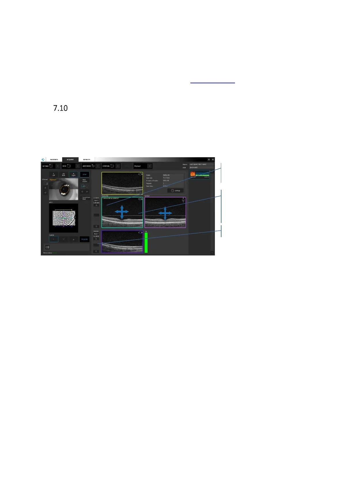 coherence gate) and [A-Focus] (Refraction compensation) buttons and sliders to the left help
