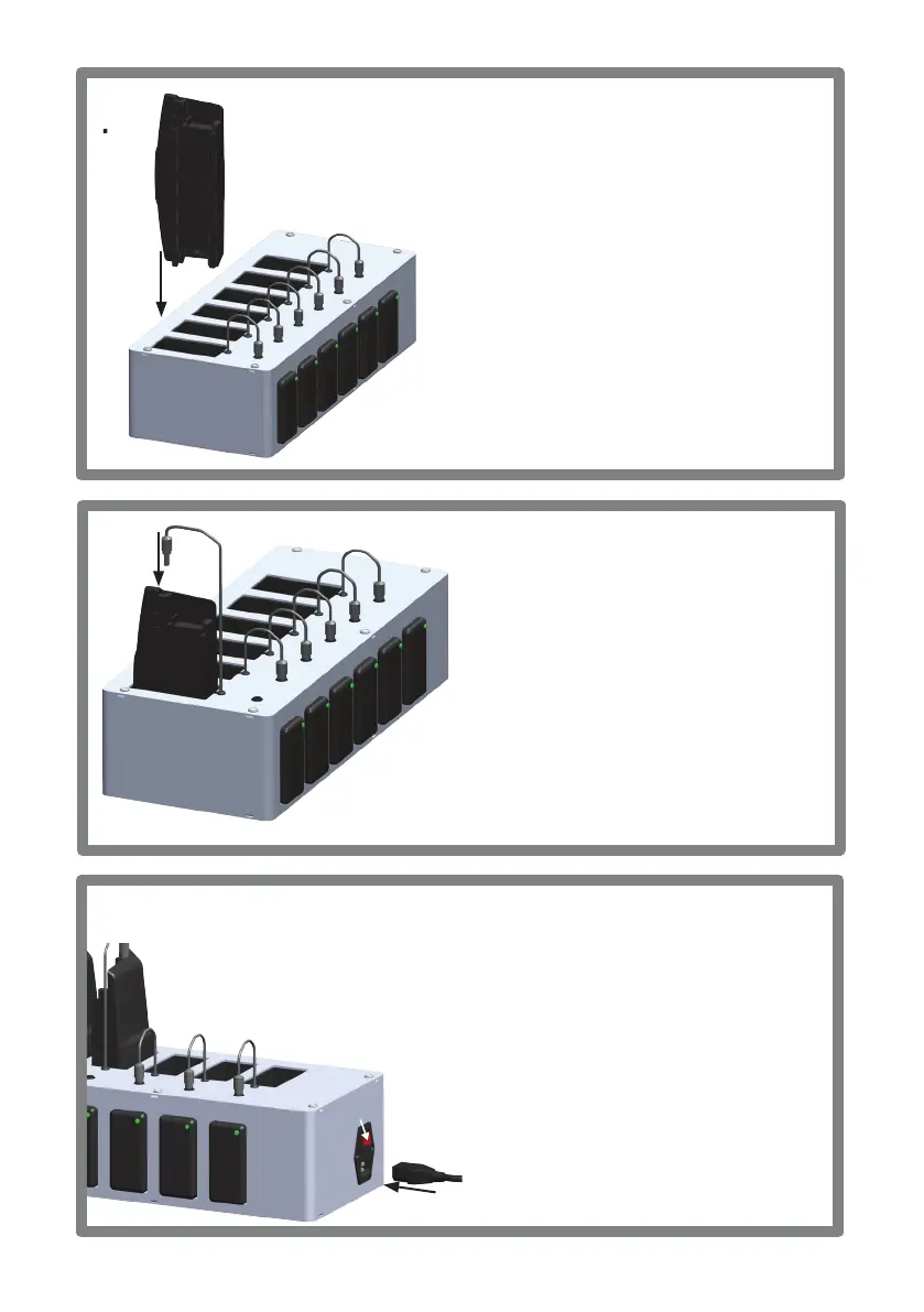 Stirnseite des Multiladegerätes, auf OFF steht.