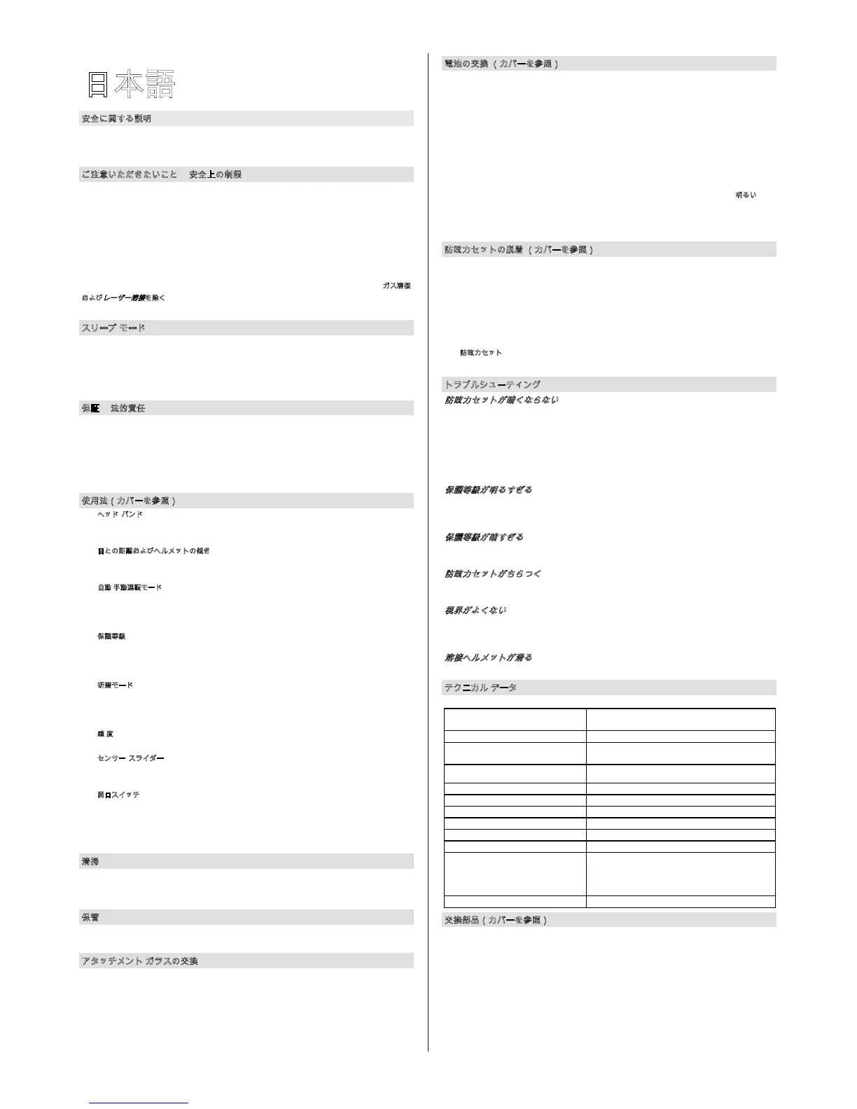 用することはできません。溶接作業員ヘルメットを規定の用途以外に使用したり、あるいは取扱説明書の