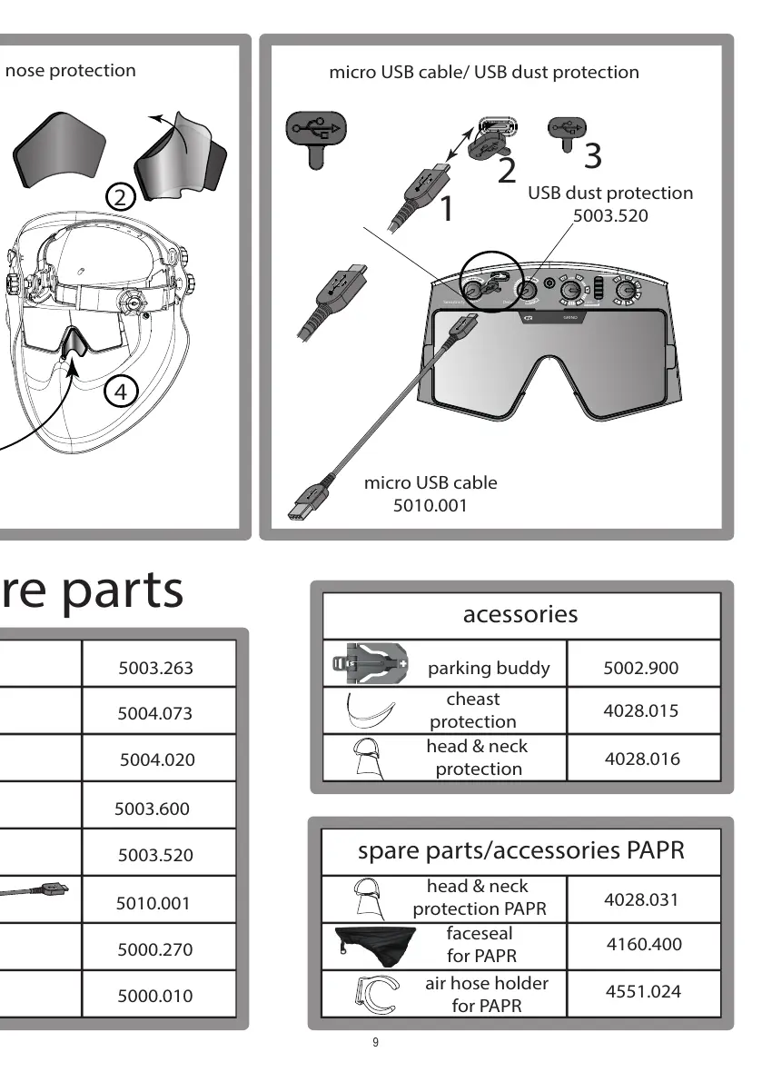 optrel panoramaxx - Additional Parts and Accessories; Nose Protection Part; Charging and Protection Accessories; PAPR System Accessories