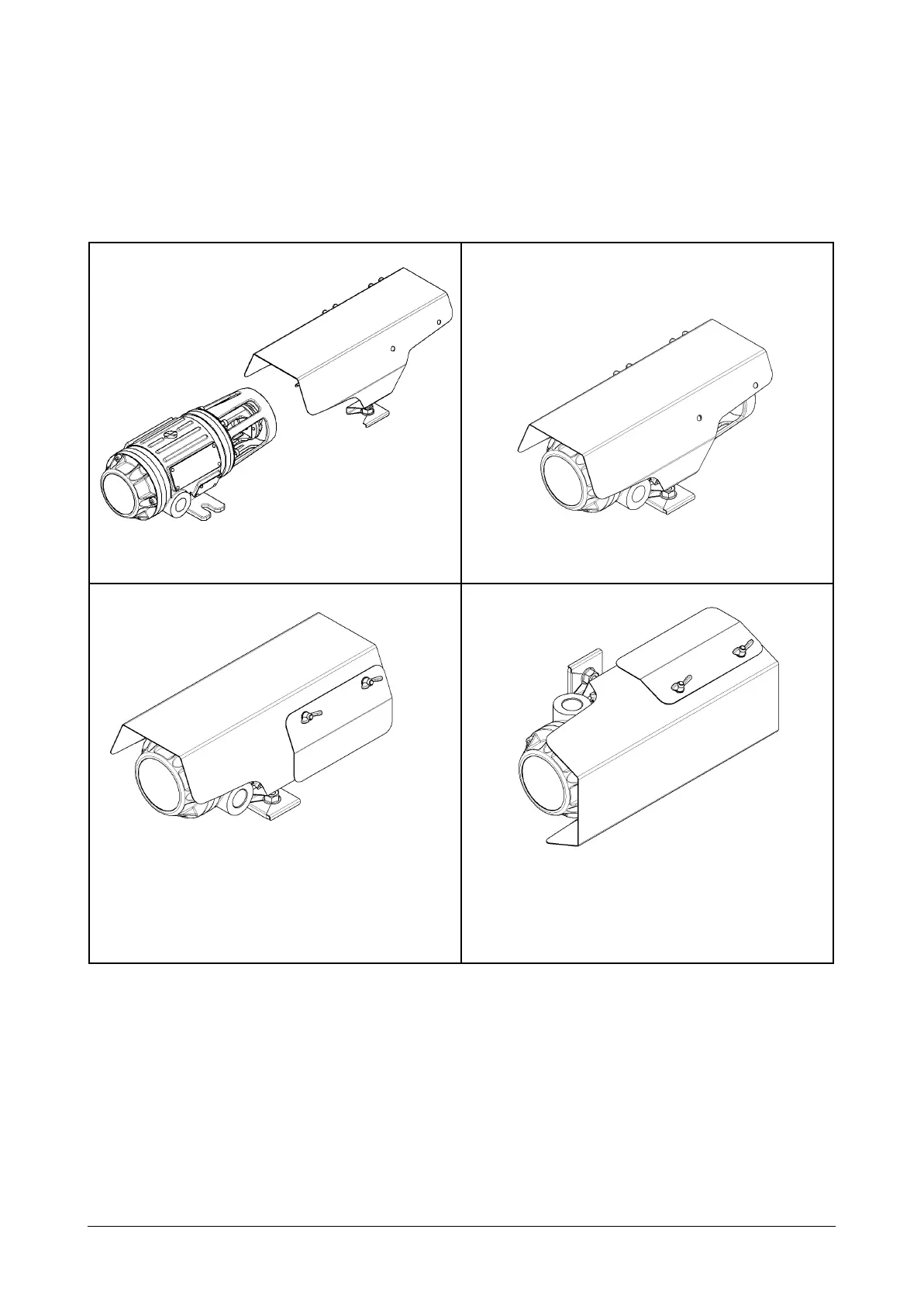 The sunshield is fitted as illustrated below. The sunshield is fixed with the same screws as the