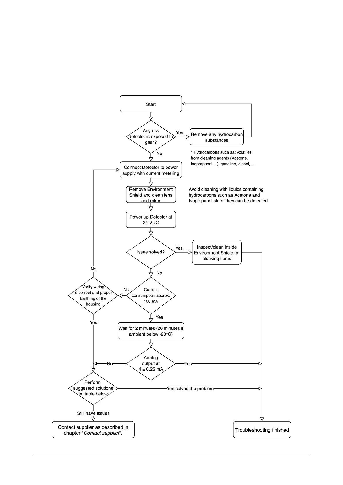Do not return the Gas detector to the supplier for repair if the procedure below has not been