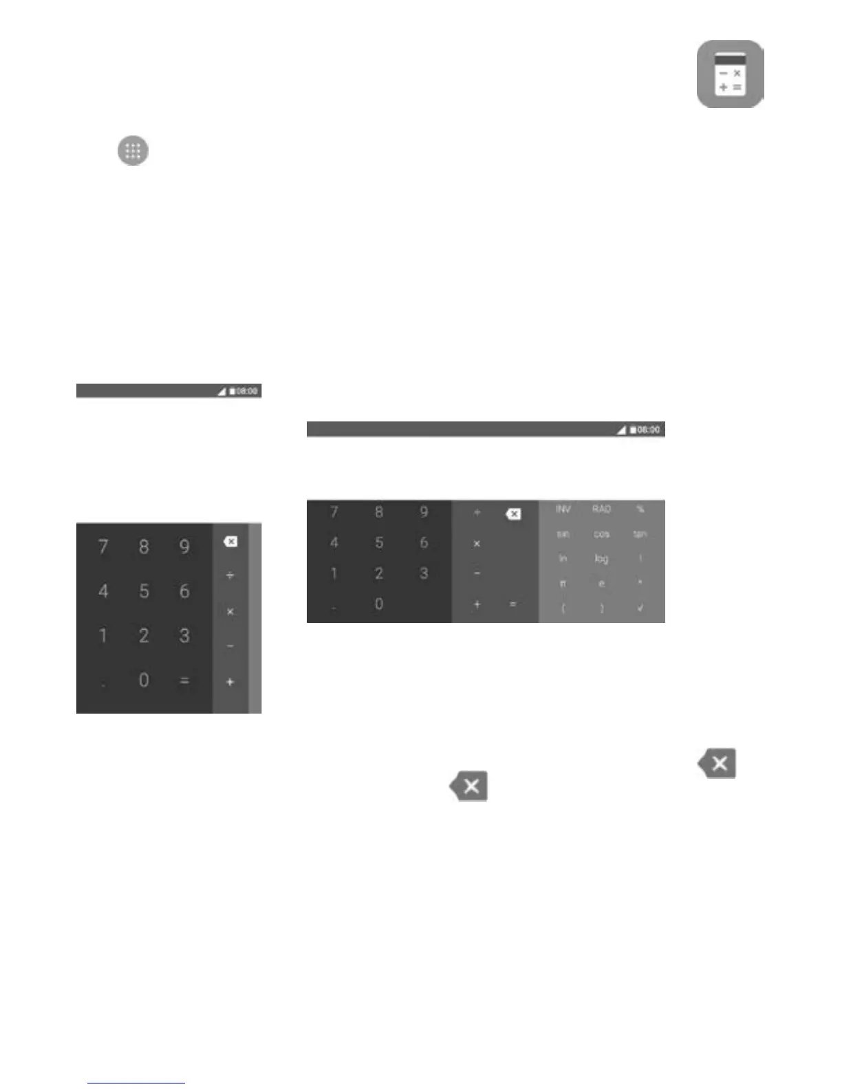 • Swipe the basic calculation screen to the left to open the scientific calculation.