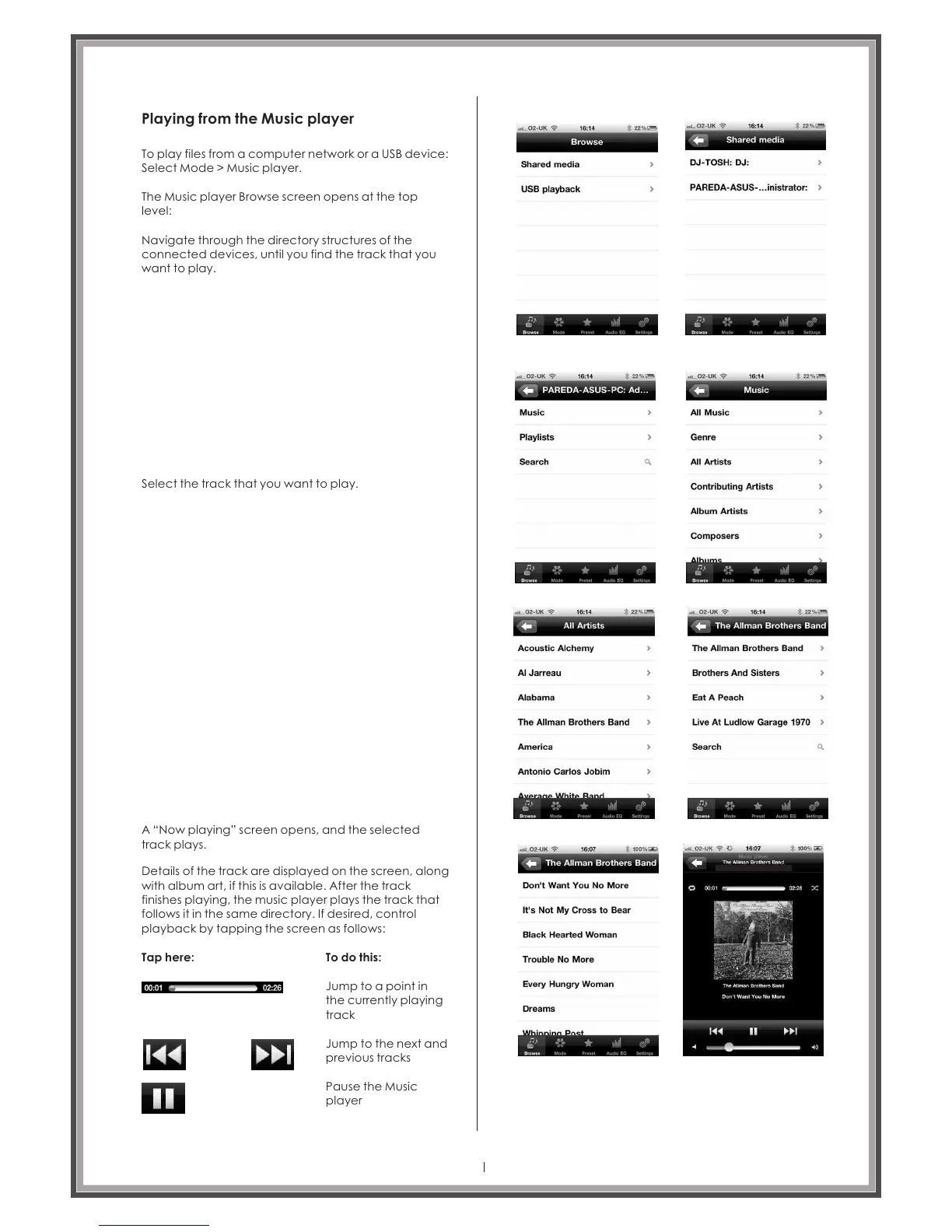 Playing from the Music player